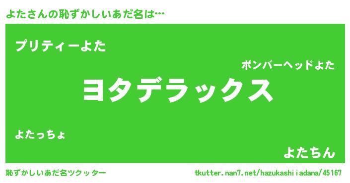 | ヘコむあだ名 | 『よたっふぃ~』『よた(笑)』 |