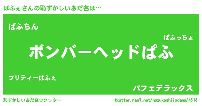 | 意味不明あだ名 | 『眠気覚ましガムぱふぇ味』『自称ぱふぇ』 |
