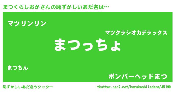| 男性向けラノベタイトル風あだ名 | 『マツクラシオカスレイヤー』 |
