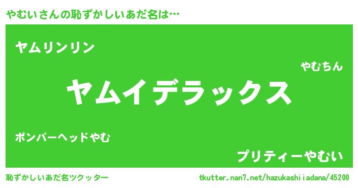 | 意味不明あだ名 | 『自称やむい』『とにかく怪しいやむい』 |