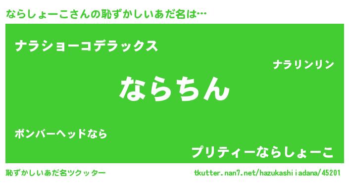 | ヘコむあだ名 | 『ならしょーこ(遠い目)』『ならにゅー』 |