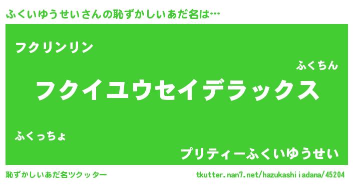 | 意味不明あだ名 | 『住所不定無職ふくいゆうせい(6歳)』 |
