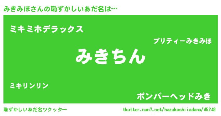 | 意味不明あだ名 | 『永久保存みきみほ』『自称みきみほ』 |