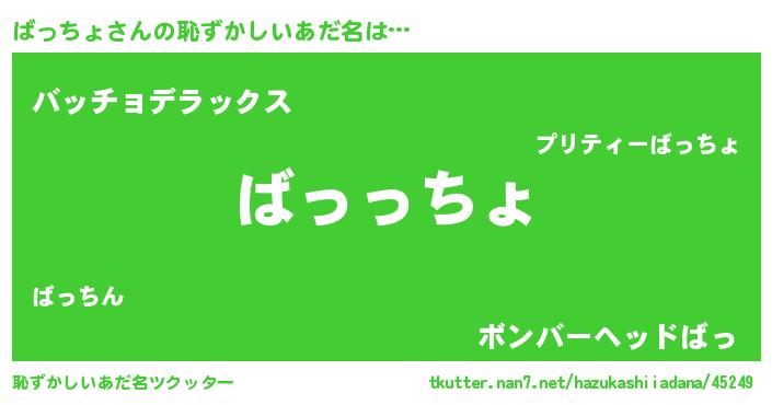 | 意味不明あだ名 | 『ばっちょフォーエバー』『自称ばっちょ』 |