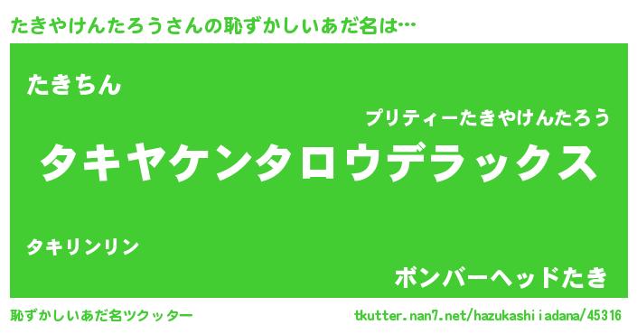 | ヒーロー風カッコイイあだ名 | 『ウルトラ戦士タキヤケンタロウ』 |