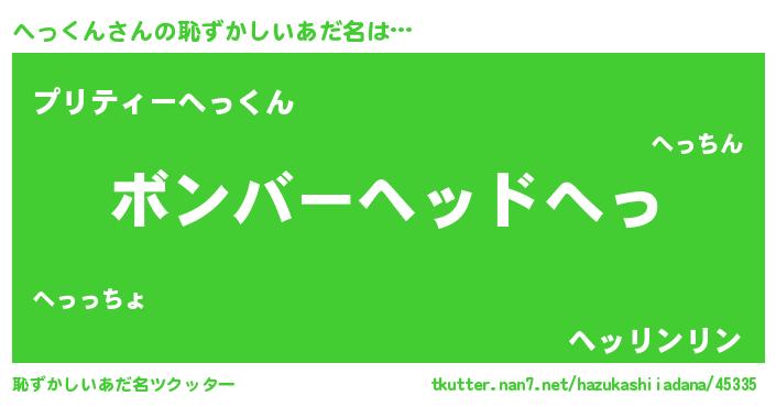 | 意味不明あだ名 | 『眠気覚ましガムへっくん味』 |