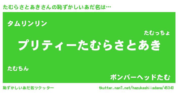 | ヒーロー風カッコイイあだ名 | 『スーパータムラサトアキ』 |