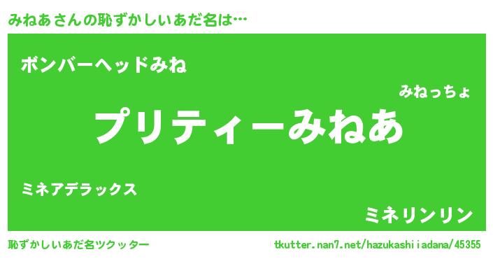| ヒーロー風カッコイイあだ名 | 『スーパーミネア』『愛の使者みねあ』 |