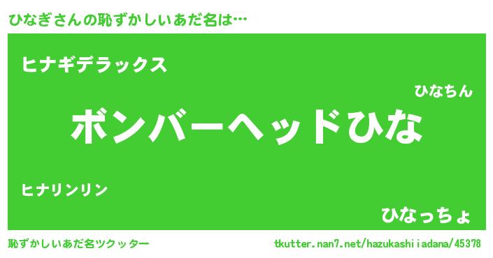 | 男性向けラノベタイトル風あだ名 | 『ヒナギスレイヤー』 |