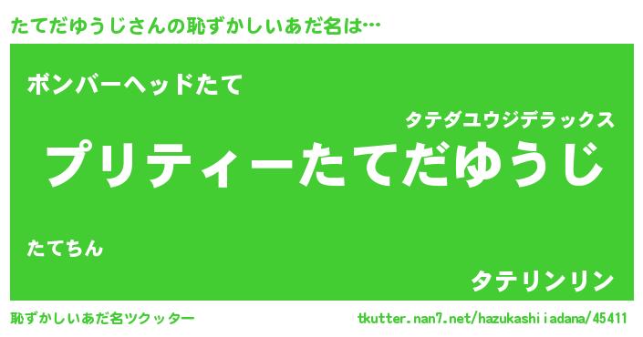 | ヒーロー風カッコイイあだ名 | 『仮面タテダー』『スーパータテダユウジ』 |