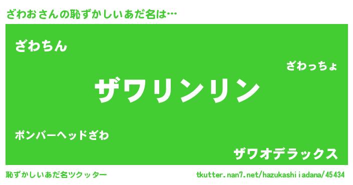 | 男性向けラノベタイトル風あだ名 | 『ダンジョンにざわおを求めるのは間違っているだろうか』 |