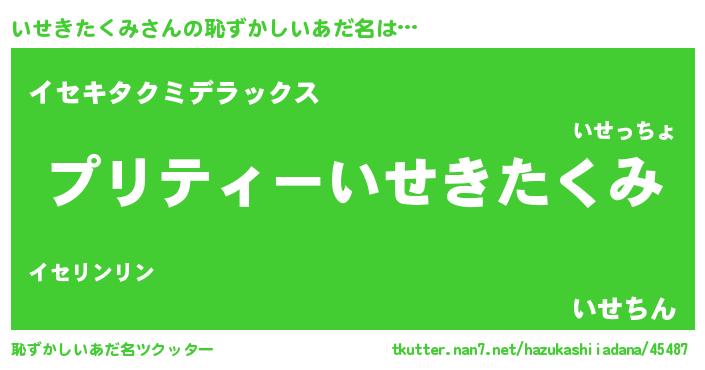 | ヘコむあだ名 | 『いせにゅー』『いせきたくみ(笑)』 |