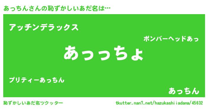 | ヒーロー風カッコイイあだ名 | 『ウルトラあっちんマン』『ネオアッチン』 |