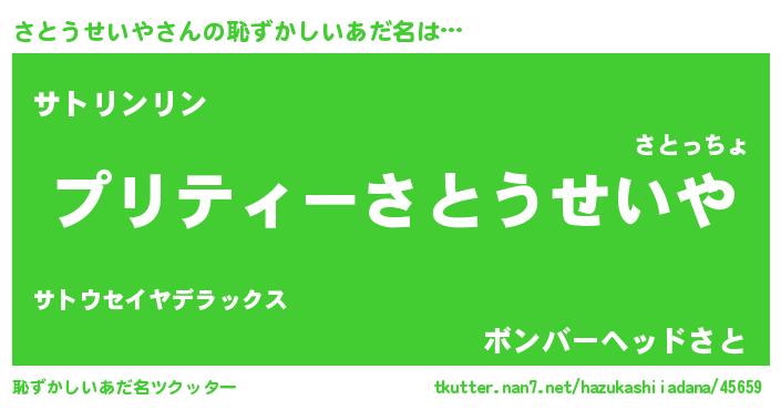 | 意味不明あだ名 | 『住所不定無職さとうせいや(5歳)』 |