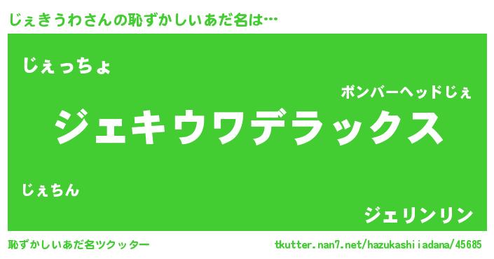 | 女子向けラノベタイトル風あだ名 | 『闇のじぇきうわ』 |
