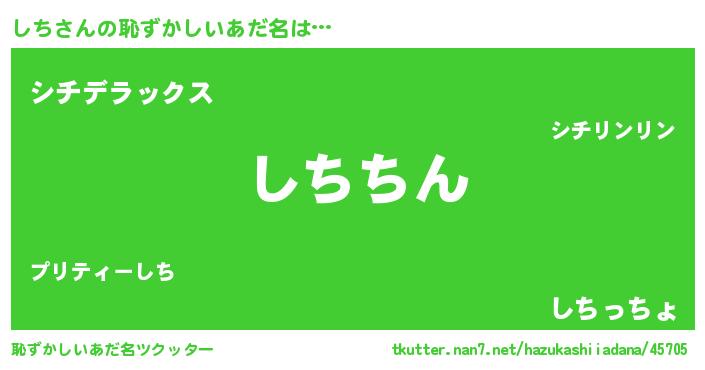 | 料理風あだ名 | 『満腹しちマフィン』『しちの豆乳スープ』 |