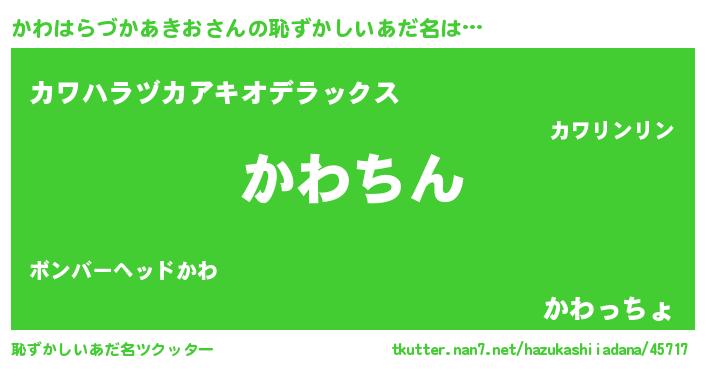 | 意味不明あだ名 | 『永久保存かわはらづかあきお』 |