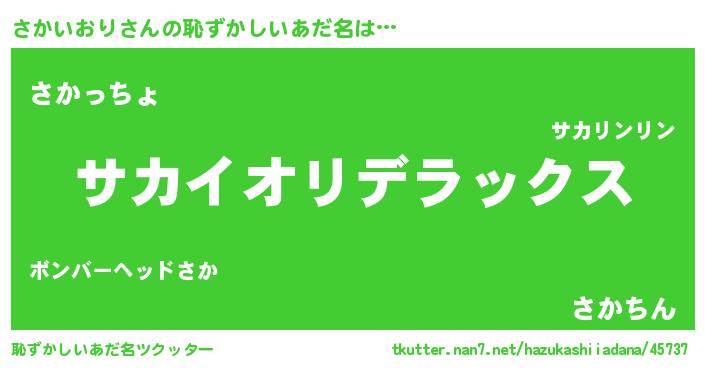 | ヘコむあだ名 | 『酢こんぶ』『さかいおり(苦笑)』 |