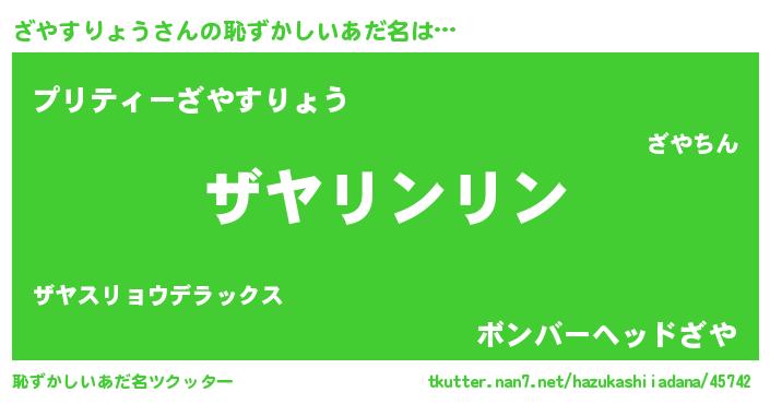 | 意味不明あだ名 | 『とにかく怪しいざやすりょう』 |