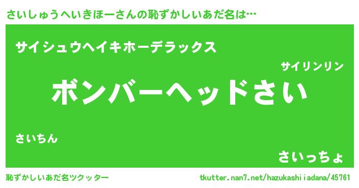 | 欧米人風あだ名 | 『ダニエルさいしゅうへいきほー』 |