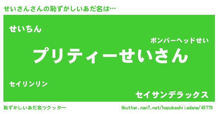 | 意味不明あだ名 | 『ペロリンせいさん』『永久保存せいさん』 |