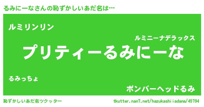 | 意味不明あだ名 | 『ペロリンるみにーな』『自称るみにーな』 |