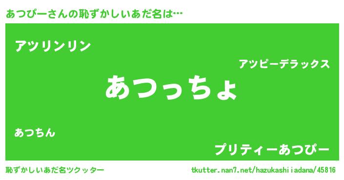 | 意味不明あだ名 | 『あつぴーフォーエバー』 |