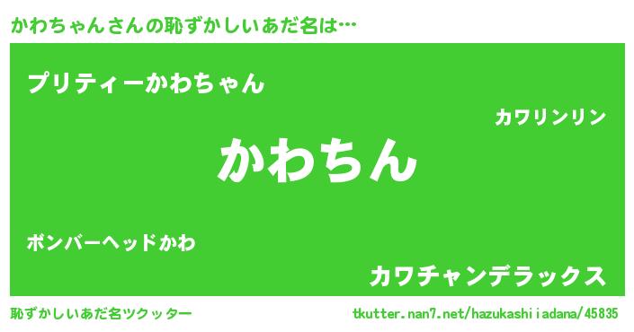 | 意味不明あだ名 | 『永久保存かわちゃん』『自称かわちゃん』 |