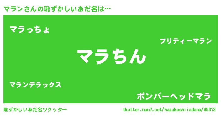 | ヘコむあだ名 | 『マラン(小並感)』『豆乳』『マラお』 |