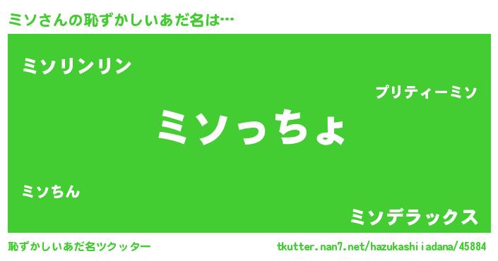 | ポケモン風あだ名 | 『ミソキング』『ミソダネ』『ヒミソ』 |