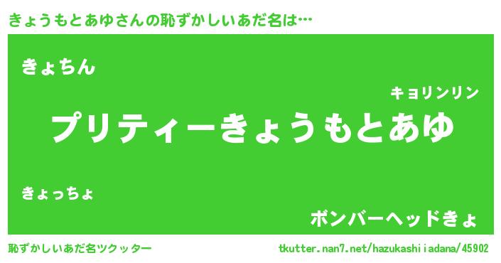 | ヘコむあだ名 | 『きょっふぃ~』『きょうもとあゆ(笑)』 |