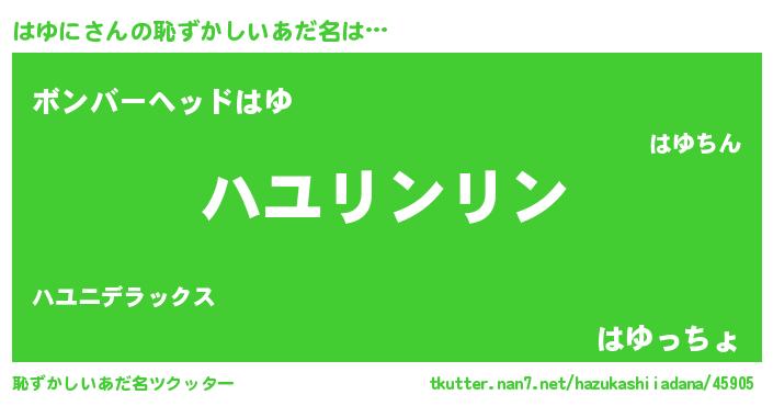 | 意味不明あだ名 | 『とにかく怪しいはゆに』 |