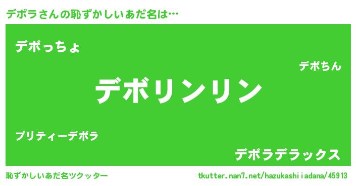 | 意味不明あだ名 | 『住所不定無職デボラ(53歳)』『自称デボラ』 |