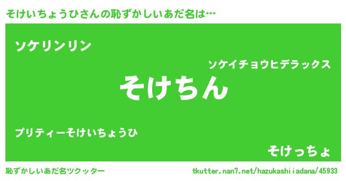 | ヘコむあだ名 | 『そけいちょうひ(笑)』『そけを』 |
