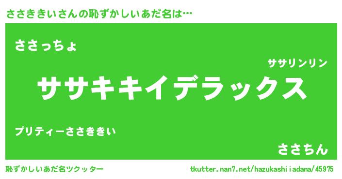 | ヒーロー風カッコイイあだ名 | 『究極戦士ササキキイ』『ネオササキキイ』 |