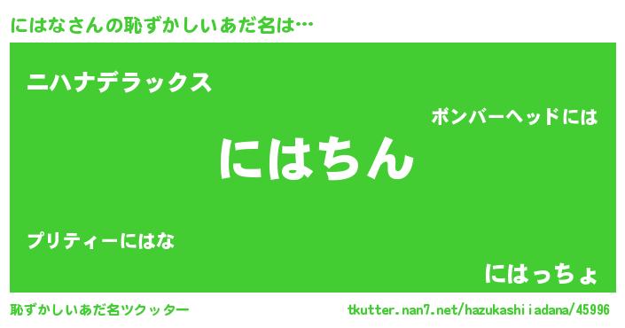| ヘコむあだ名 | 『にはな(震え声)』『酢こんぶ』 |