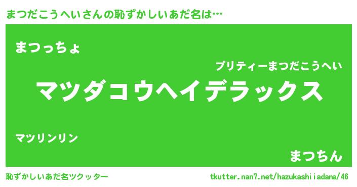 | 意味不明あだ名 | 『自称まつだこうへい』 |