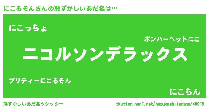 | 男性向けラノベタイトル風あだ名 | 『Re:にこるそんから始める異世界生活』 |