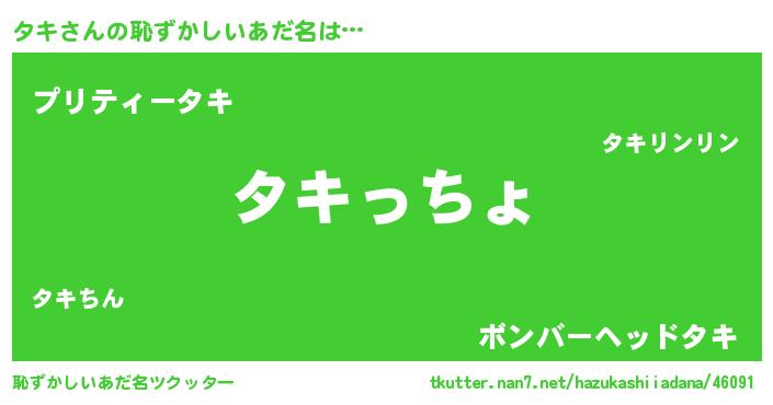 | ヒーロー風カッコイイあだ名 | 『仮面タキダー』『ウルトラタキマン』 |