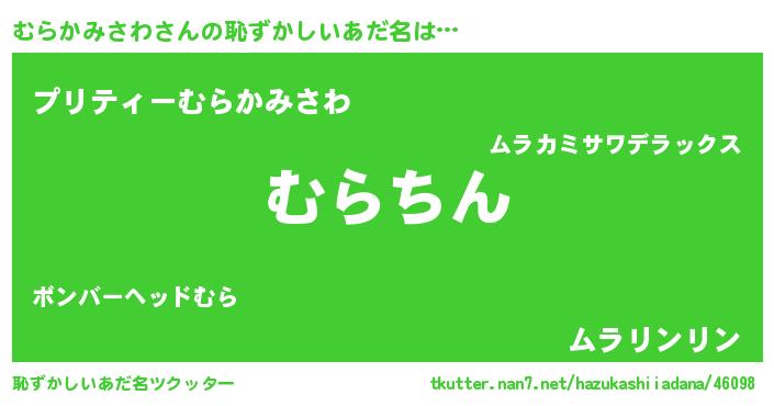 | 意味不明あだ名 | 『永久保存むらかみさわ』 |
