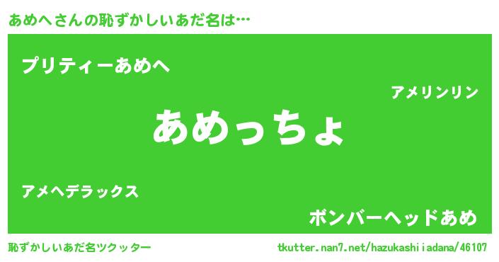 | 意味不明あだ名 | 『住所不定無職あめへ(7歳)』 |