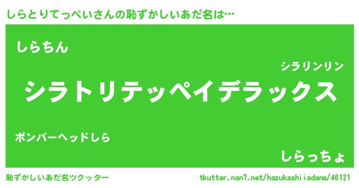 | 意味不明あだ名 | 『自称しらとりてっぺい』 |