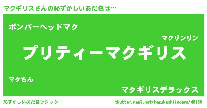 | 意味不明あだ名 | 『住所不定無職マクギリス(9歳)』 |