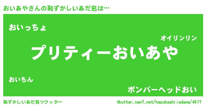 | 男性向けラノベタイトル風あだ名 | 『緋弾のオイアヤ』『オイアヤスレイヤー』 |