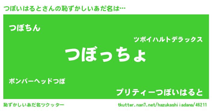 | ヘコむあだ名 | 『つくし』『つぼいはると(笑)』 |