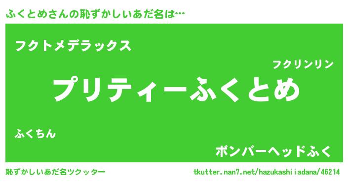 | 意味不明あだ名 | 『ペロリンふくとめ』『自称ふくとめ』 |