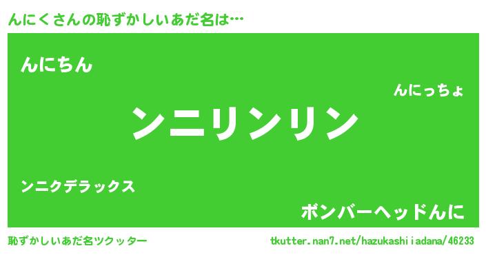 | ヘコむあだ名 | 『んにっぺ』『んにく(震え声)』 |