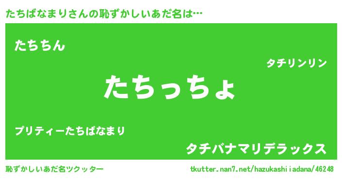 | ヒーロー風カッコイイあだ名 | 『仮面タチダー』『ネオタチバナマリ』 |