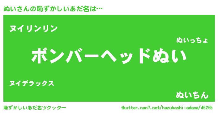 | ポケモン風あだ名 | 『ヌックウザ』『ヒヌイ』『ヌイゴンZ』 |