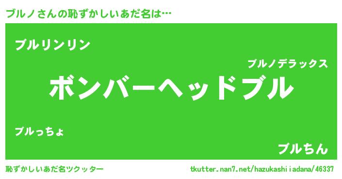 | ヘコむあだ名 | 『ブルっぺ』『ブルノ(爆)』『豆乳』 |